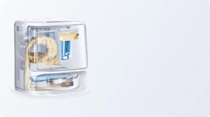 Flow cleans the rolling track mop 110 times per minute using a scraper and flowing water. Combined with 113℉ hot water and 1.22kg firm pressure, it easily erase stubborn stains in one pass.